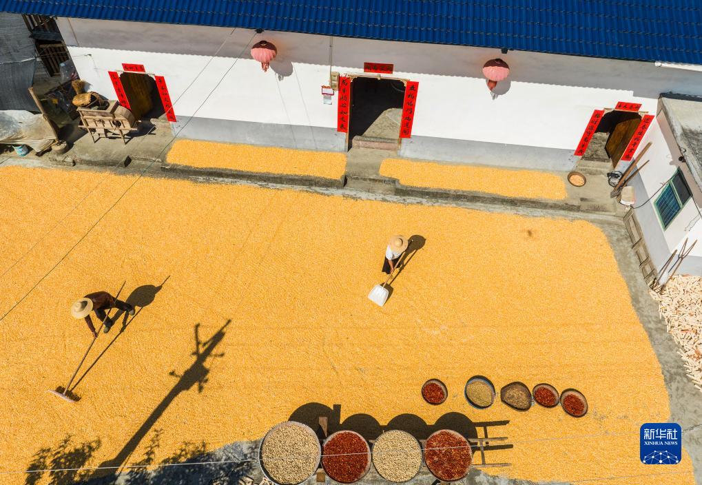 初秋時(shí)節,各地農民搶抓晴好天氣,加緊收獲、晾曬農作物。