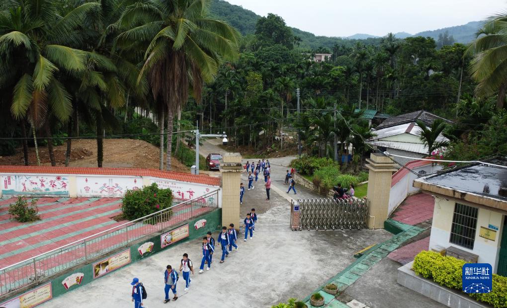 9月1日,海南省瓊中黎族苗族自治縣高田小學(xué)學(xué)生走入校園開(kāi)啟新學(xué)期(無(wú)人機照片)。