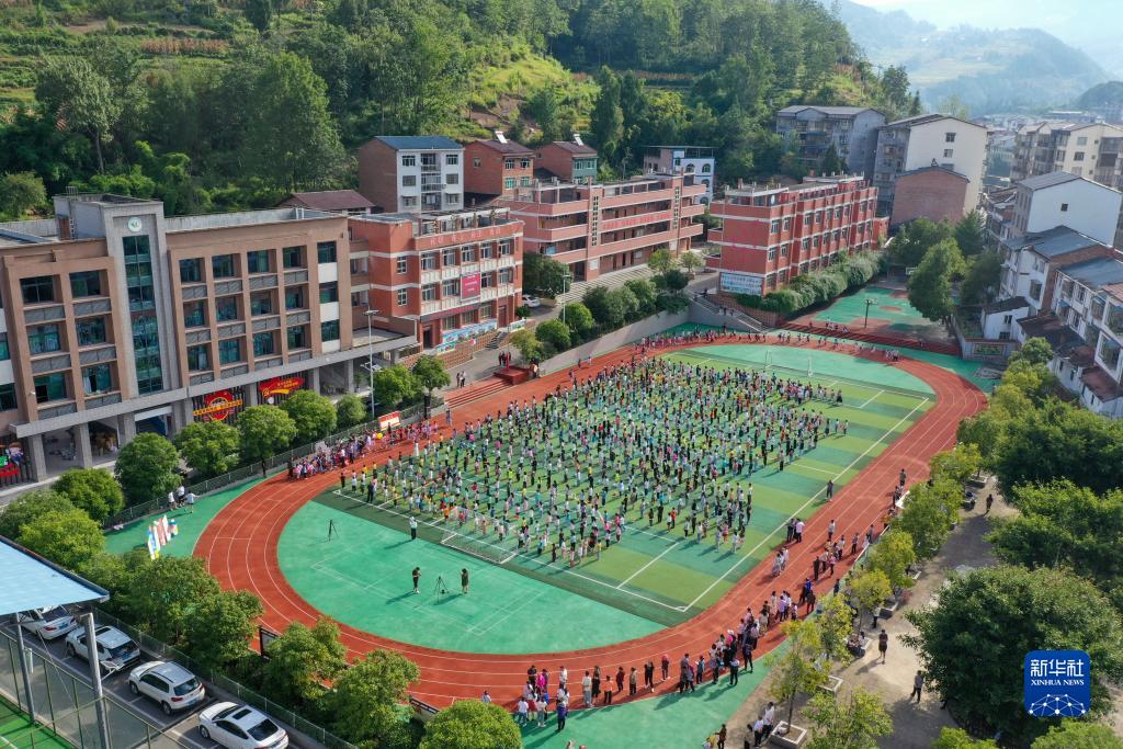 這是9月1日拍攝的重慶市石柱土家族自治縣三河鎮三河小學(xué)開(kāi)學(xué)典禮(無(wú)人機照片)。