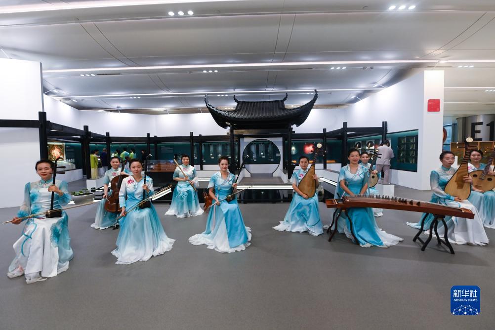 9月1日,演員在主媒體中心文化展廳內進(jìn)行傳統文化展示。