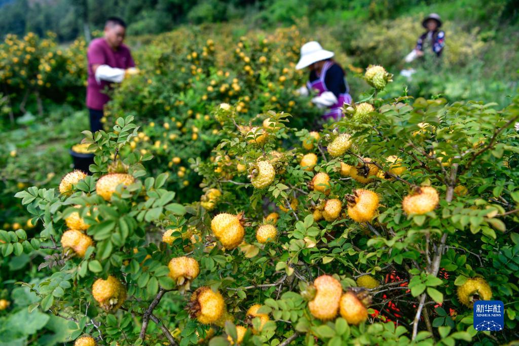 9月1日,村民在貴州省龍里縣谷腳鎮茶香村采摘刺梨。