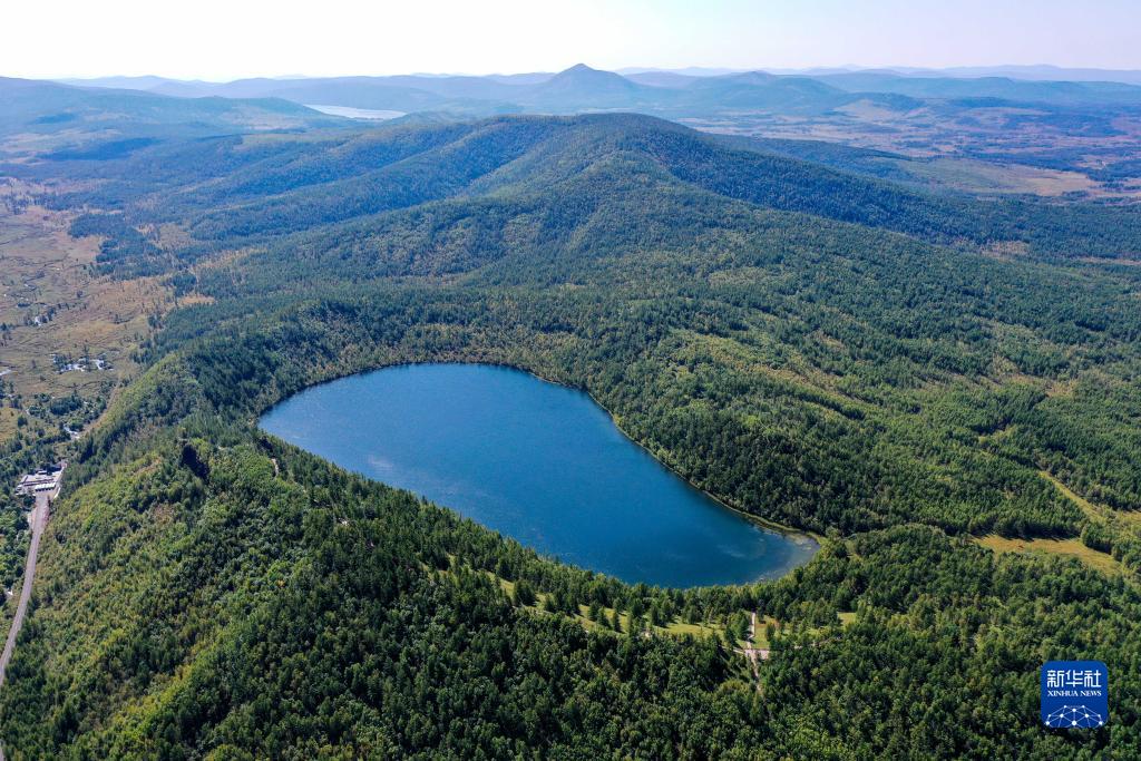 這是9月1日拍攝的阿爾山國家森林公園駝峰嶺天池景色(無(wú)人機照片)。