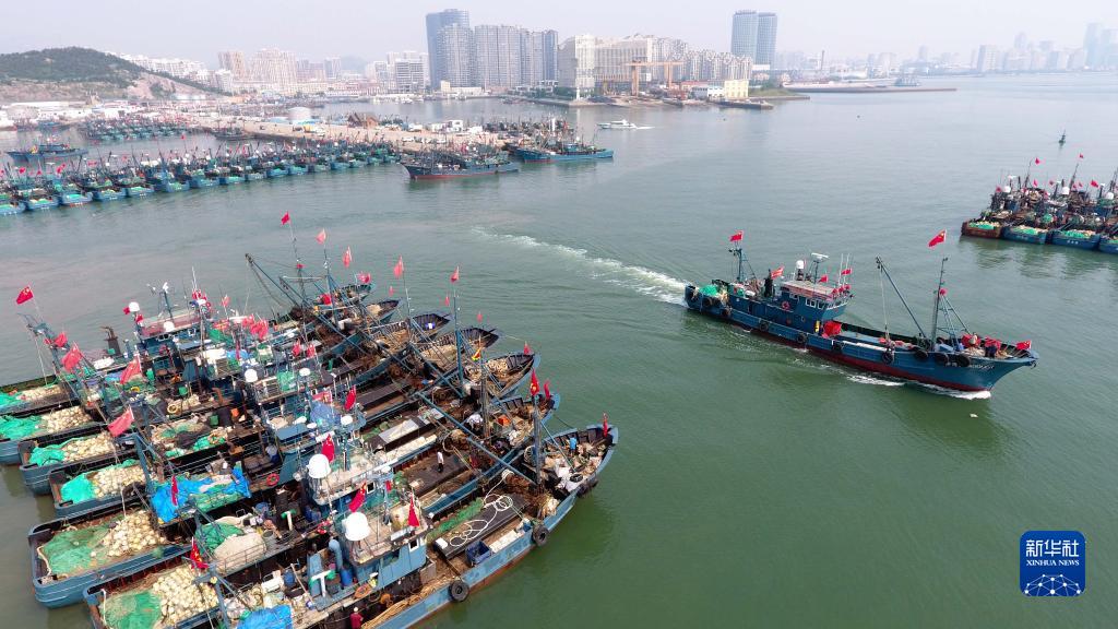 當日,為期四個(gè)月的黃渤海伏季休漁結束,所涉漁區迎來(lái)“開(kāi)?!?,各漁港碼頭千帆競發(fā),漁船出海進(jìn)行捕撈作業(yè)。