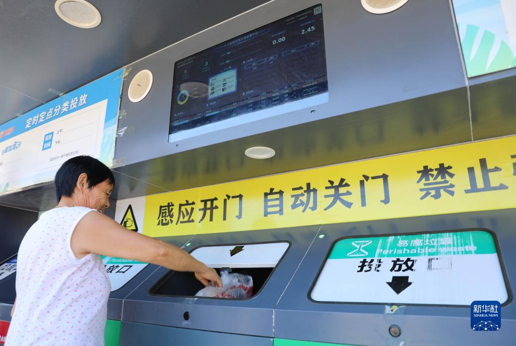 9月1日,莊墓鎮棗林社區居民在使用智能垃圾分類(lèi)回收設備。