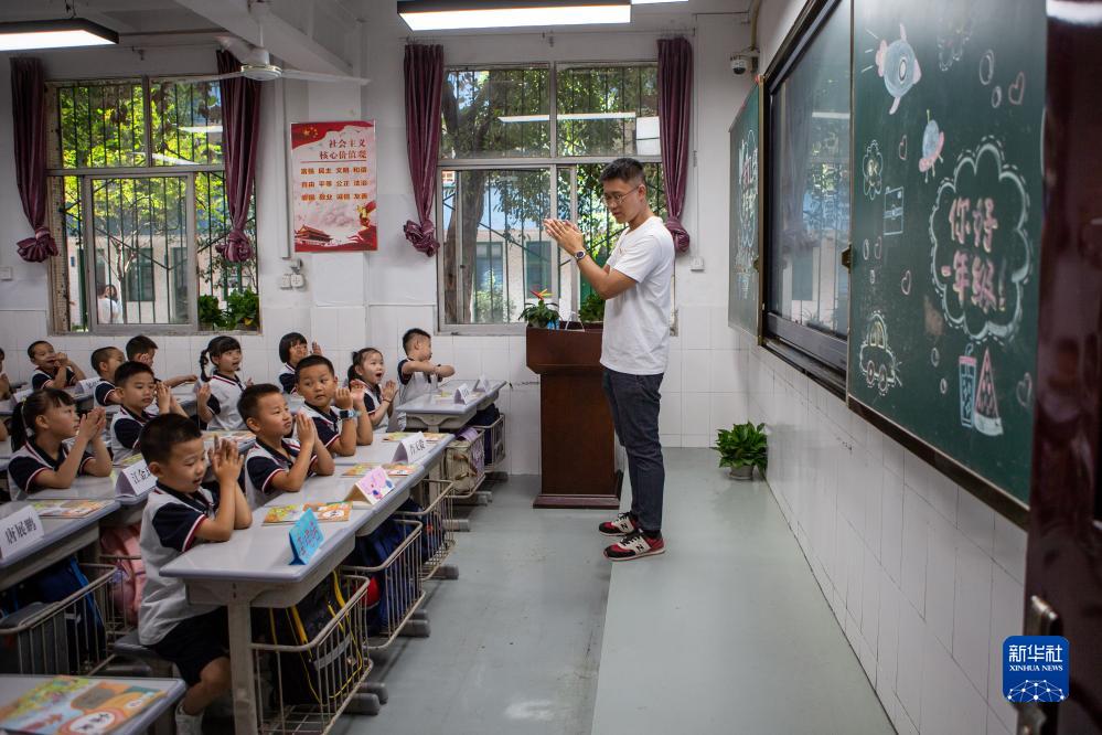 9月1日,在重慶育才實(shí)驗學(xué)校華巖校區,豆豆(右三)在教室內上課。