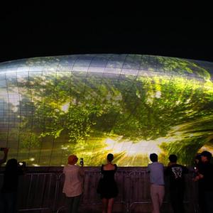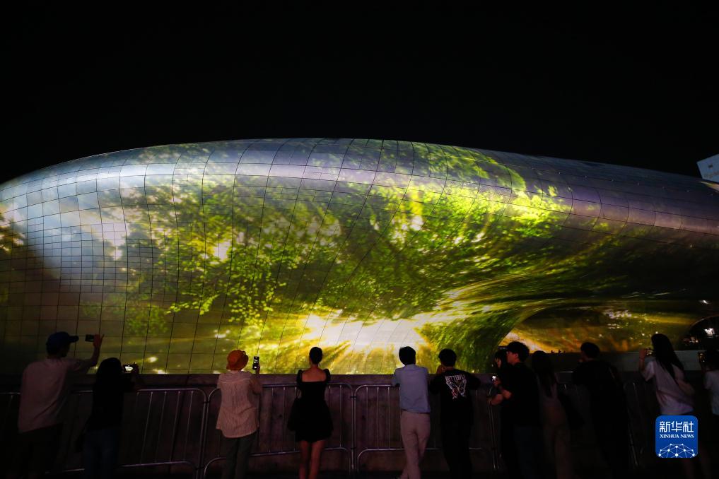 9月1日,人們在韓國首爾東大門(mén)設計廣場(chǎng)觀(guān)看燈光秀。