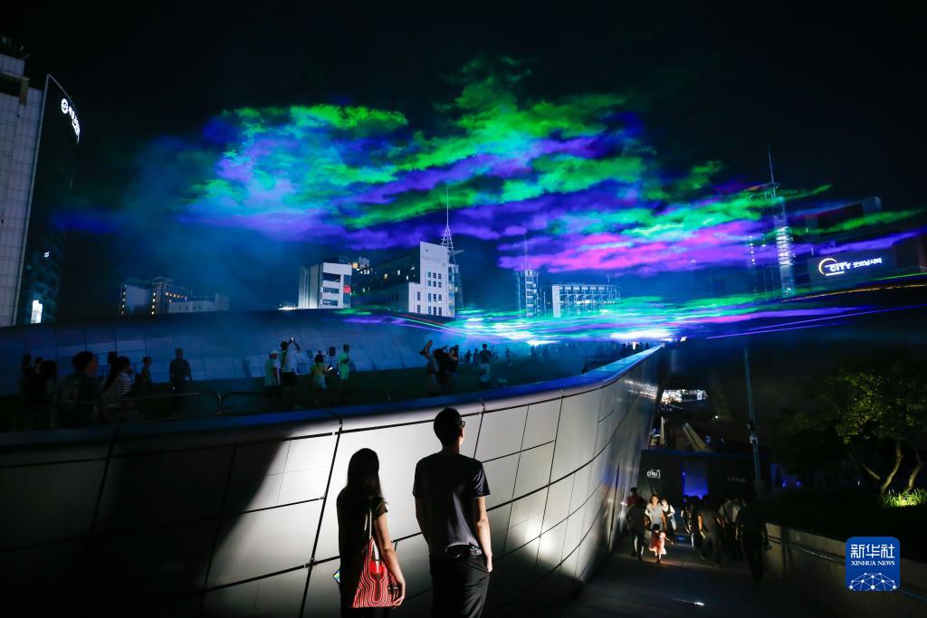 9月1日,人們在韓國首爾東大門(mén)設計廣場(chǎng)觀(guān)看燈光秀。