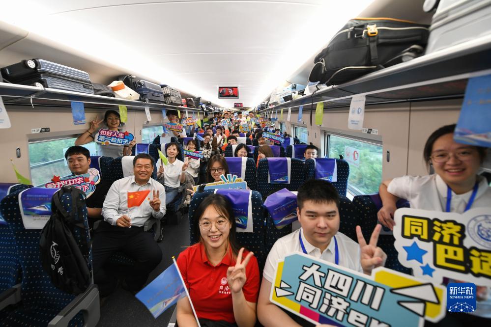 當日,四川省同濟大學(xué)校友會(huì )和同濟大學(xué)四川招生組聯(lián)合中國鐵路成都局集團有限公司,舉行高鐵“包車(chē)”活動(dòng),免費送同濟大學(xué)150名2023級四川籍新生和他們的家長(cháng)前往上海。