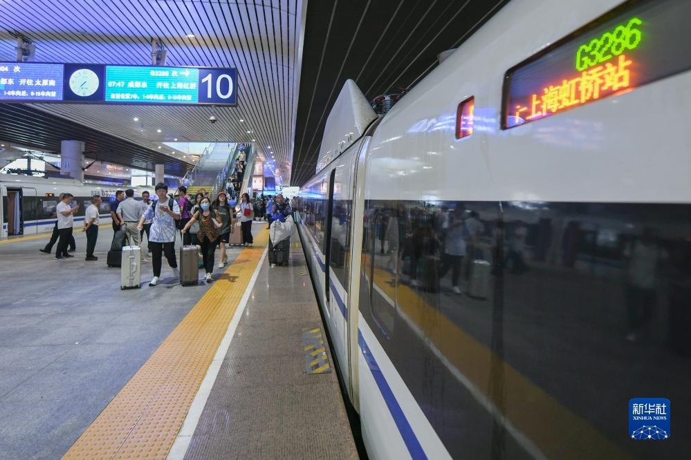 9月1日,在成都東站,同濟大學(xué)2023級四川籍新生和家長(cháng)準備登車(chē)。