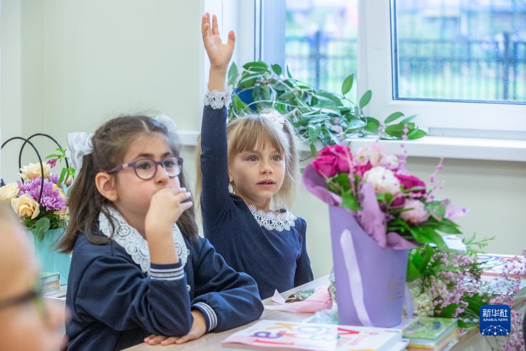 這是9月1日拍攝的俄羅斯圣彼得堡第362學(xué)校一年級學(xué)生。