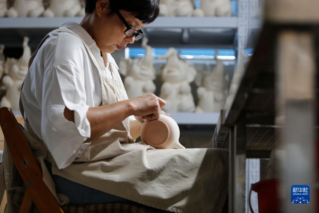 8月31日,在清涼寺村的一家汝瓷生產(chǎn)企業(yè),工作人員在車(chē)間里加工汝瓷產(chǎn)品。