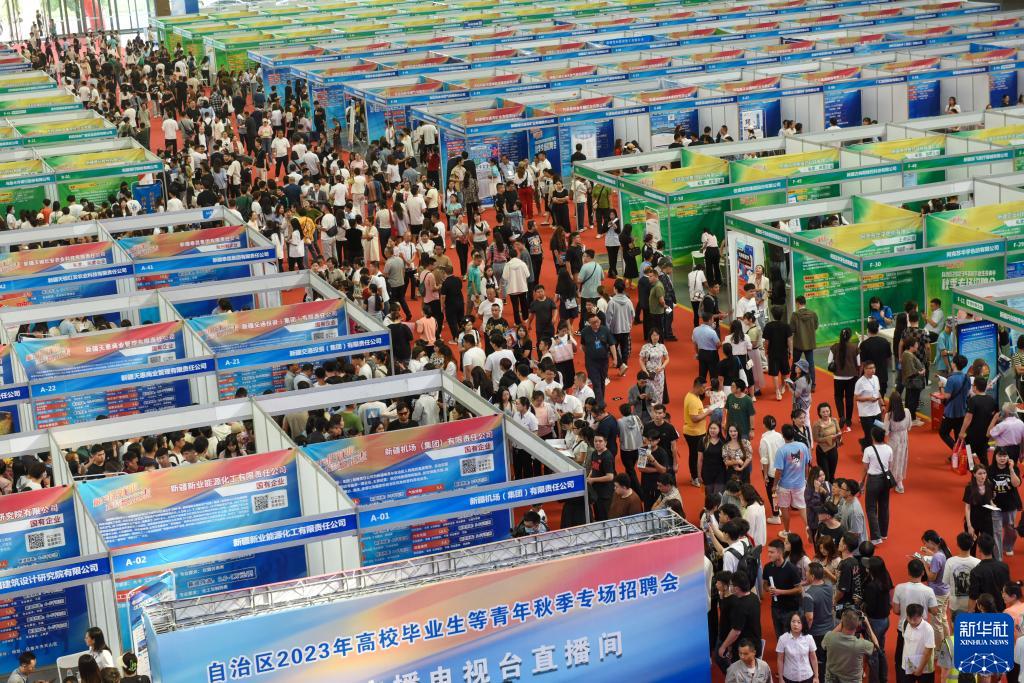 當日,新疆維吾爾自治區2023年高校畢業(yè)生等青年秋季專(zhuān)場(chǎng)招聘會(huì )在烏魯木齊市舉辦。此次招聘活動(dòng)是繼3月自治區高校畢業(yè)生春季招聘大會(huì )之后,新疆舉辦的又一場(chǎng)大型高校畢業(yè)生專(zhuān)場(chǎng)招聘活動(dòng),參加企業(yè)數超500家,涉及農林牧漁業(yè)、制造業(yè)、金融業(yè)、采礦業(yè)及服務(wù)業(yè)等20個(gè)行業(yè),共提供崗位1.6萬(wàn)余個(gè)。