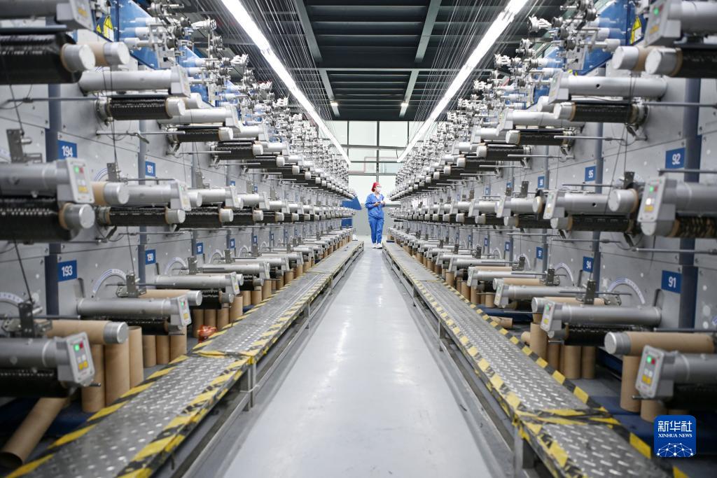 在中國建材集團西寧萬(wàn)噸碳纖維生產(chǎn)基地,工作人員檢查碳纖維生產(chǎn)線(xiàn)運行情況(8月27日攝)。