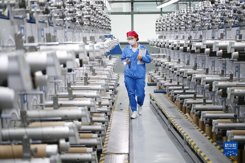 在中國建材集團西寧萬(wàn)噸碳纖維生產(chǎn)基地,工作人員檢查碳纖維生產(chǎn)線(xiàn)運行情況(8月27日攝)。