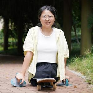 使用滑板出行的蔣張子怡(8月31日攝)。