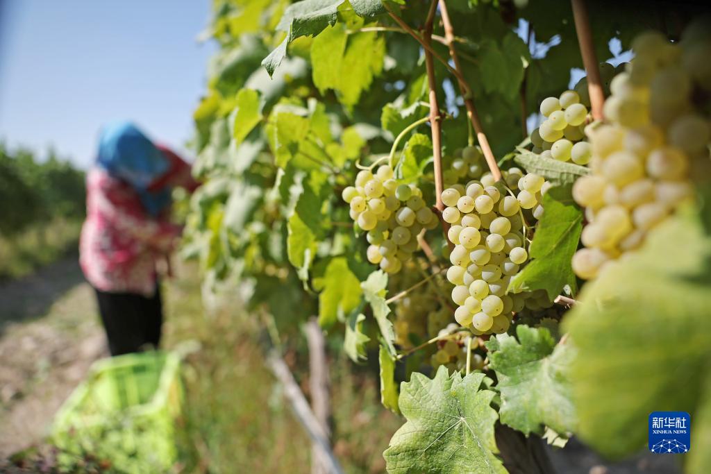 采摘工在銀川市西夏區志輝源石酒莊采摘釀酒葡萄(9月1日攝)。
