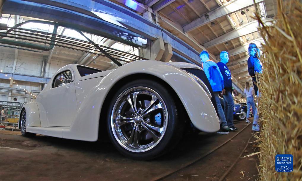 9月2日,人們在白俄羅斯明斯克參觀(guān)老爺車(chē)。
