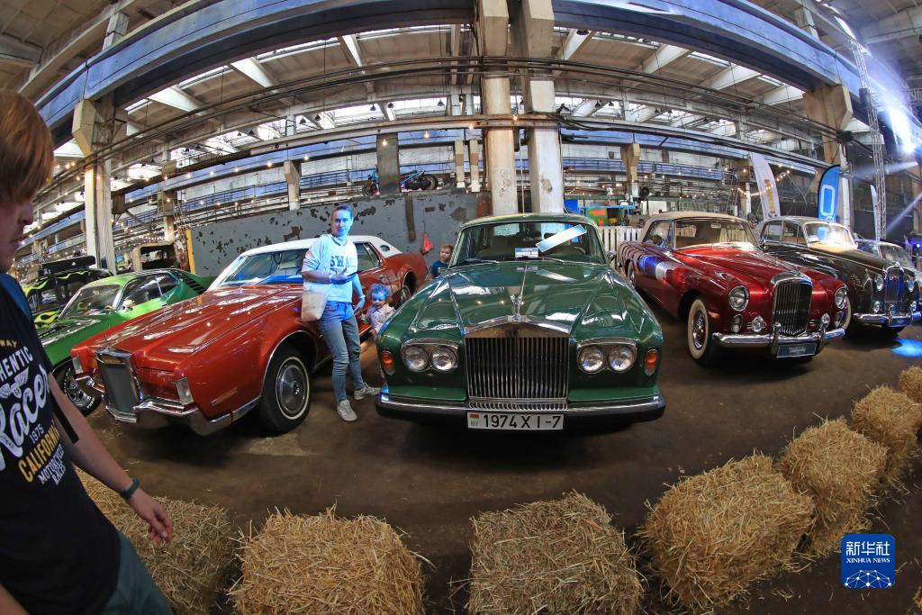 9月2日,人們在白俄羅斯明斯克參觀(guān)老爺車(chē)。