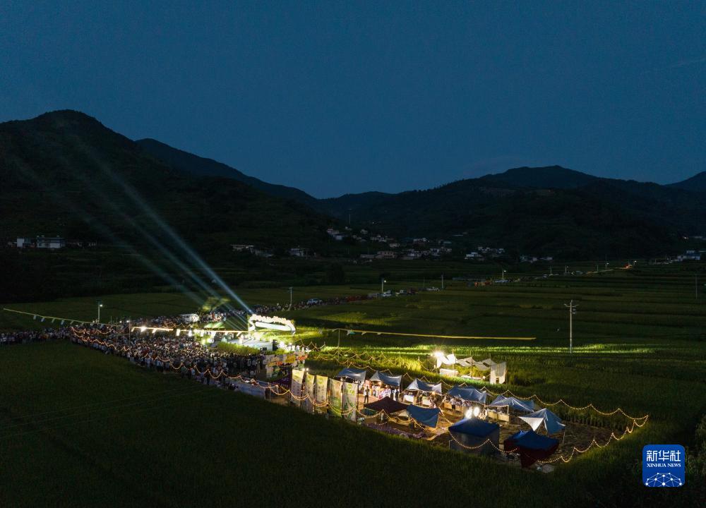 9月2日,在鹽邊縣惠民鎮興隆村的豐收后的稻田里,一場(chǎng)傳承農耕文化的稻田音樂(lè )會(huì )正在上演(無(wú)人照片)。