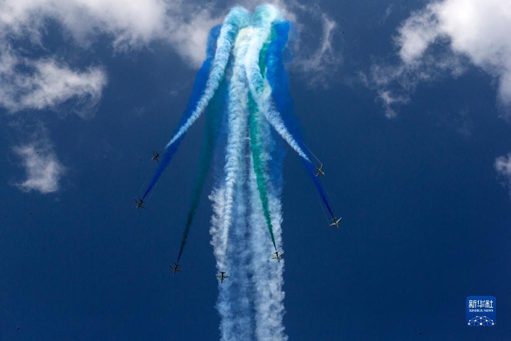 9月2日,在希臘塔納格拉空軍基地的雅典飛行周上,來(lái)自沙特阿拉伯的飛行表演隊進(jìn)行表演。