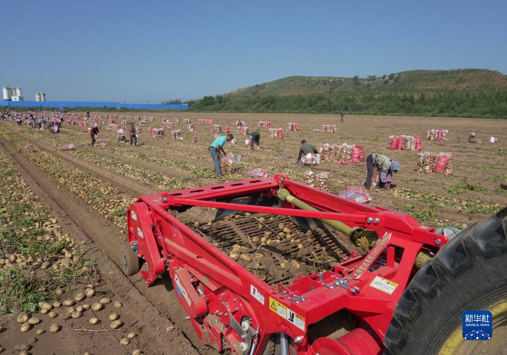 9月3日,河北省圍場(chǎng)滿(mǎn)族蒙古族自治縣御道口鎮御道口村一家馬鈴薯種植合作社社員在收獲馬鈴薯。