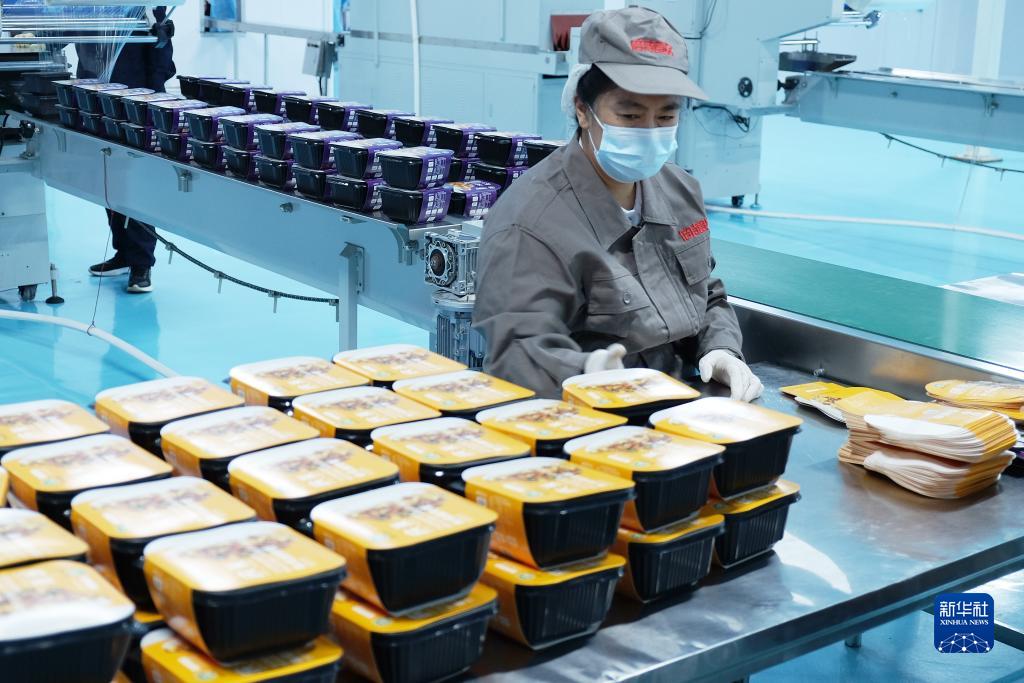 9月4日,在位于綏化市慶安縣的黑龍江倍特食品有限公司生產(chǎn)車(chē)間,工作人員在加工制作自熱米飯。
