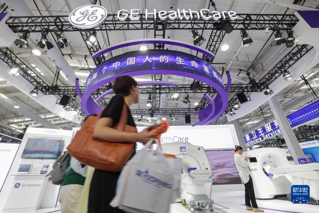 9月4日,參觀(guān)者走過(guò)服貿會(huì )首鋼園健康衛生服務(wù)展區的通用電氣醫療展臺。
