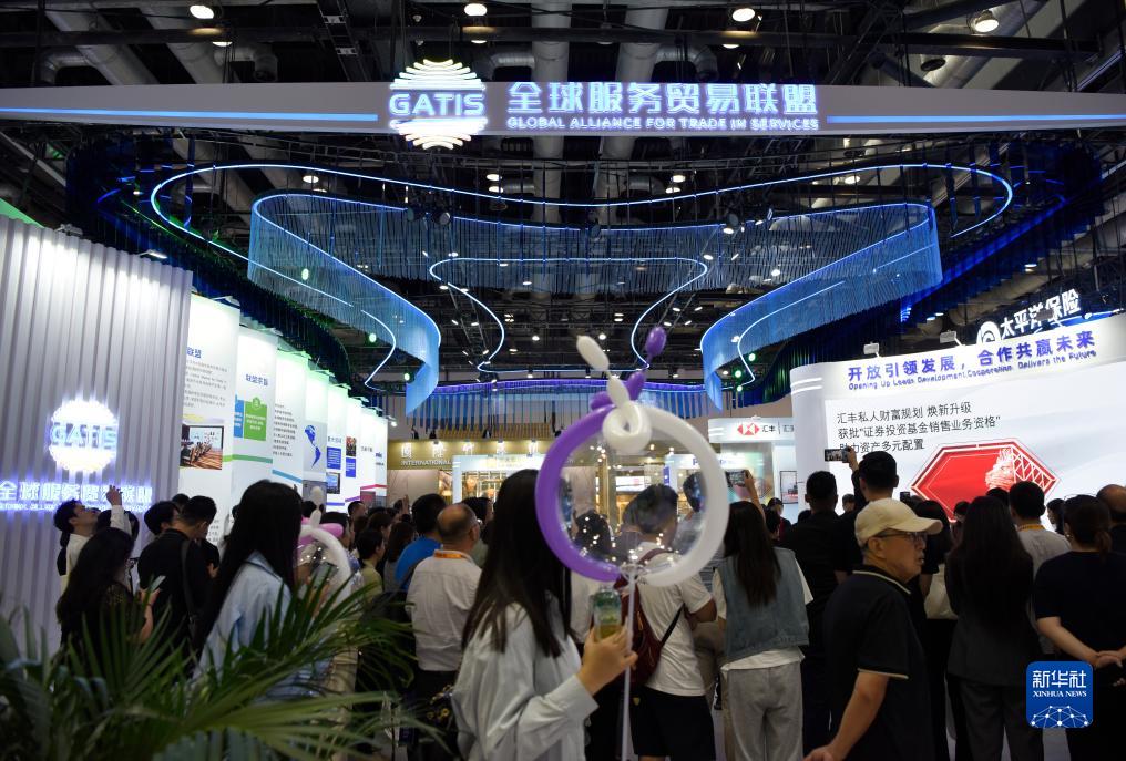 9月4日,觀(guān)眾在服貿會(huì )的全球服務(wù)貿易聯(lián)盟展臺參觀(guān)。