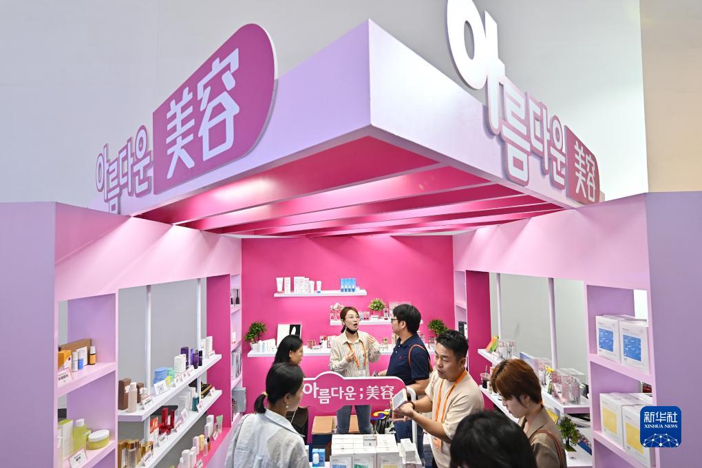 9月4日,參觀(guān)者在服貿會(huì )國家會(huì )議中心的韓國展臺了解美容產(chǎn)品。