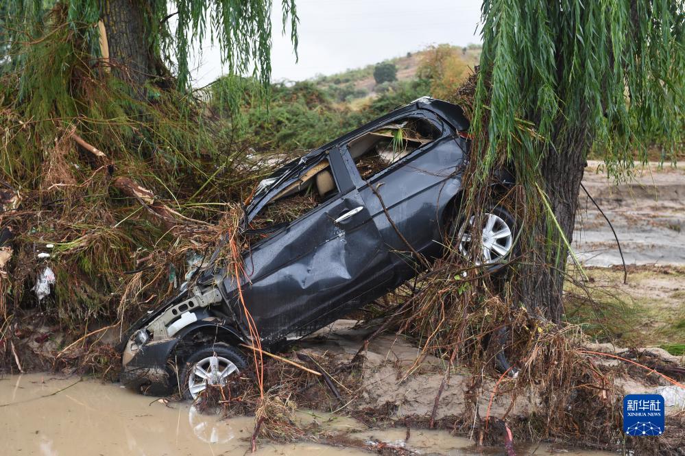 這是9月4日在西班牙馬德里比利亞曼塔鎮拍攝的被損毀的汽車(chē)。