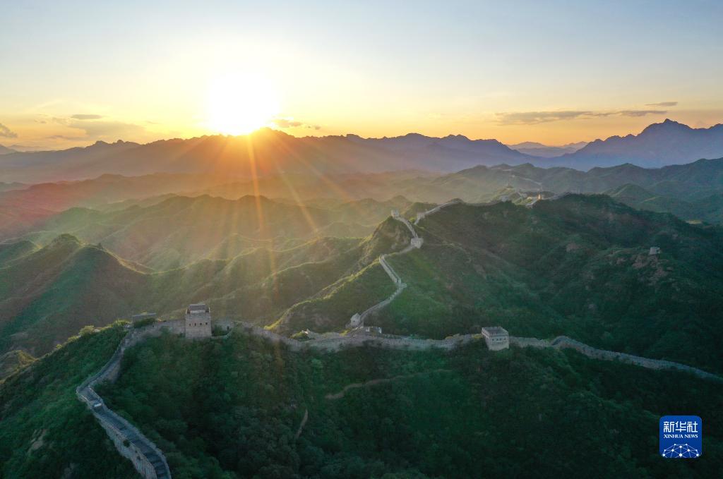 黃昏中的金山嶺長(cháng)城(8月31日攝,無(wú)人機照片)。