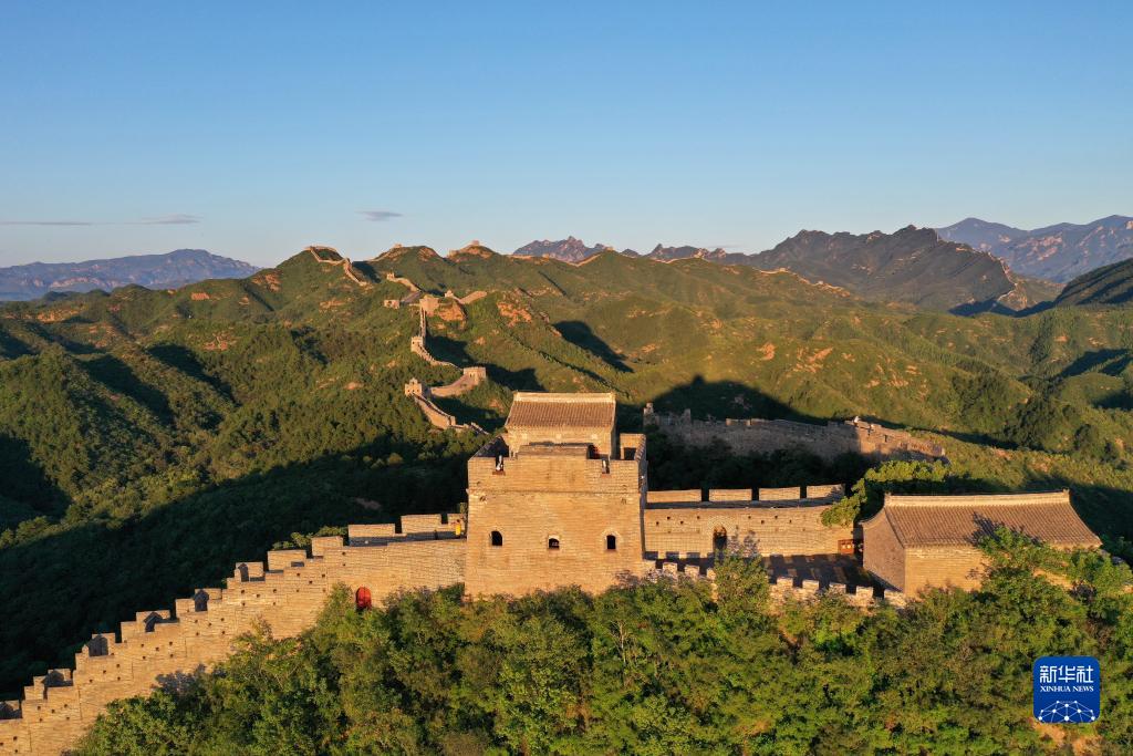 黃昏中的金山嶺長(cháng)城將軍樓(8月31日攝,無(wú)人機照片)。