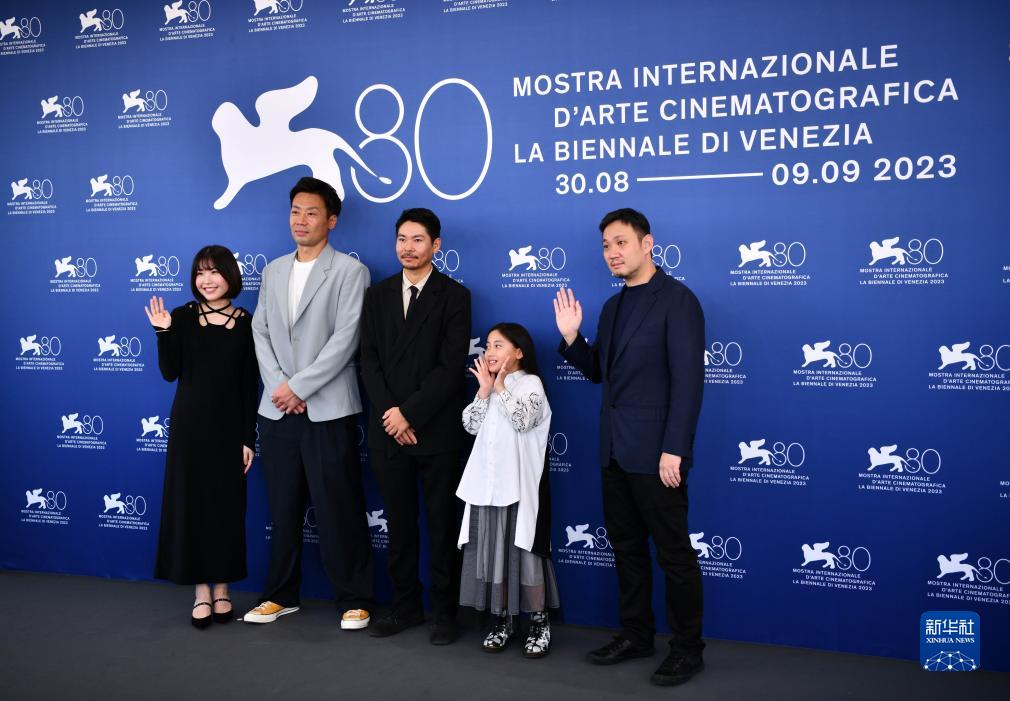 9月4日,電影《邪惡不存在》導演濱口龍介(右一)攜主創(chuàng )人員出席意大利威尼斯電影節拍照式。