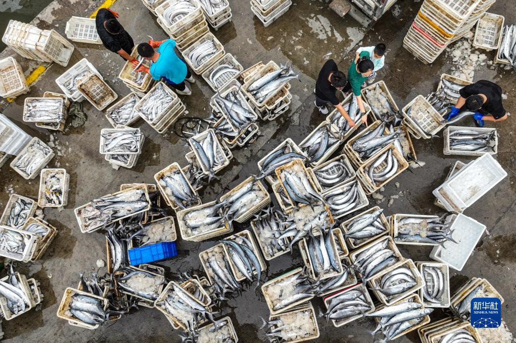 當日,山東省榮成市成山鎮落鳳漁港一派繁忙景象,秋捕歸來(lái)的漁船滿(mǎn)載而歸,靠港卸魚(yú)。