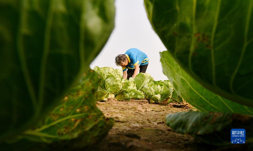 9月5日,菜農在河北省石家莊市欒城區吳郭村菜園里管理包心菜。