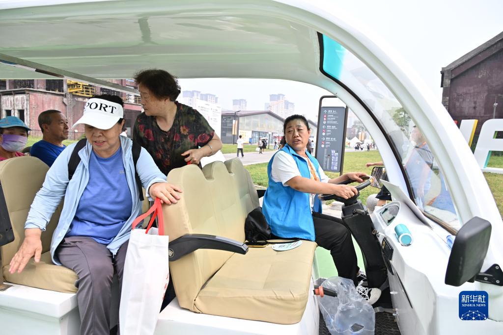 9月5日,擺渡車(chē)司機高現平提醒參觀(guān)者下車(chē)時(shí)注意。
