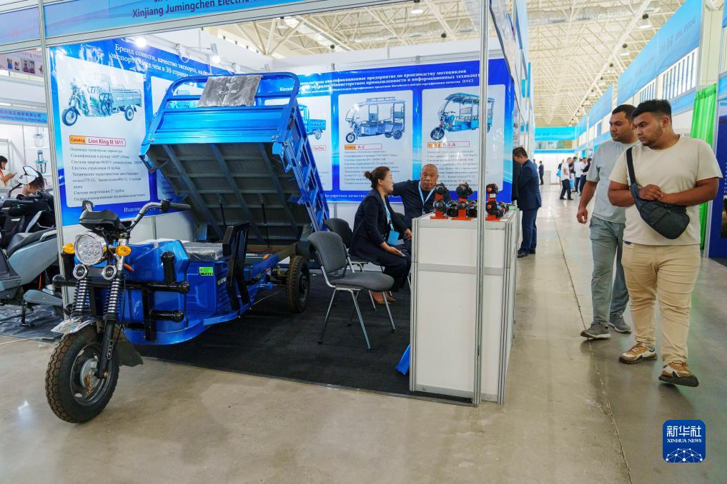 9月4日,人們在烏茲別克斯坦塔什干舉辦的第十二屆烏茲別克斯坦-中國新疆商品展覽會(huì )上參觀(guān)展區。