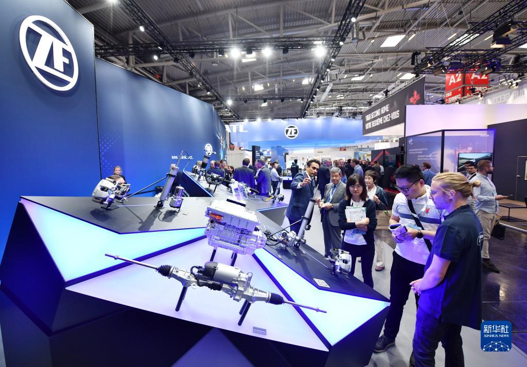 9月5日,在德國慕尼黑,人們在德國國際汽車(chē)及智慧出行博覽會(huì )的采埃孚展區參觀(guān)。