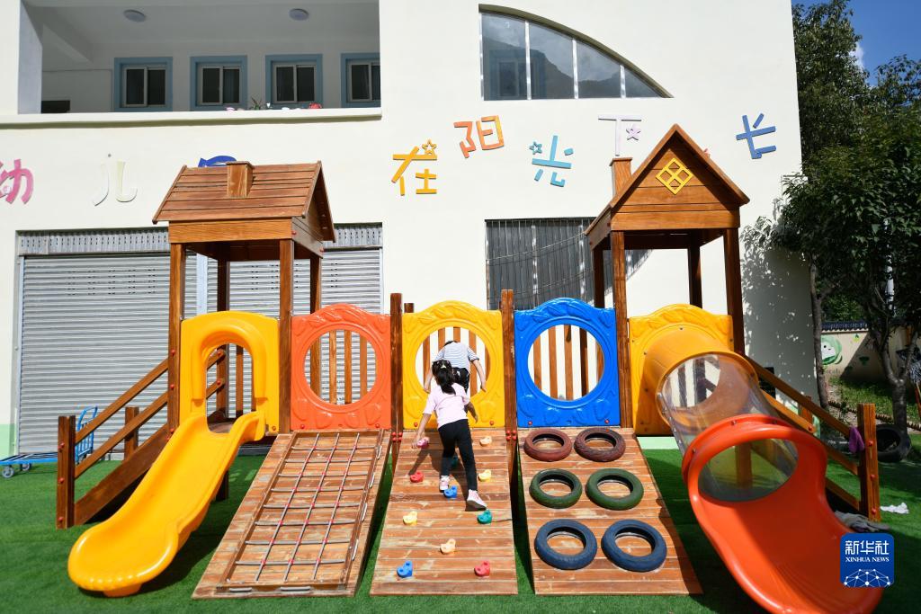 9月4日,小朋友在瀘定縣德威鎮幼兒園玩耍。