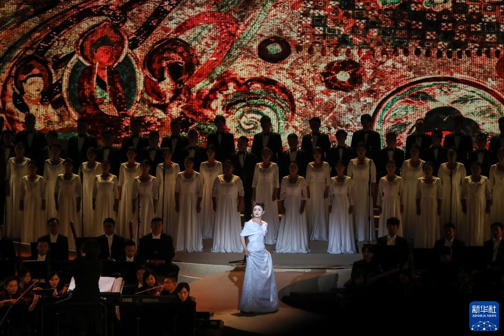 9月5日晚,音樂(lè )劇《飛天》(音樂(lè )會(huì ))在位于甘肅省敦煌市的敦煌大劇院上演。本場(chǎng)演出精選音樂(lè )劇《飛天》中14首經(jīng)典唱段,以敦煌飛天為靈感,以“一帶一路”為主題,薈萃絲路文化元素,講述敦煌精彩故事。