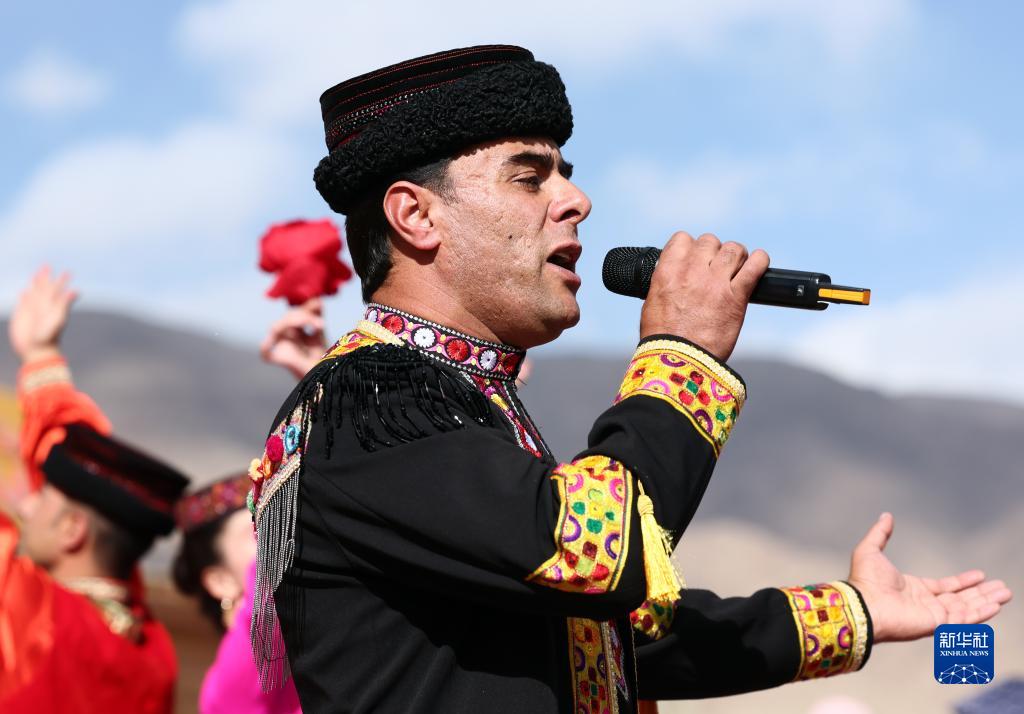 在新疆塔什庫爾干塔吉克自治縣帕米爾旅游區游客服務(wù)中心,縣文工團演員唱歌歡迎游客(9月4日攝)。
