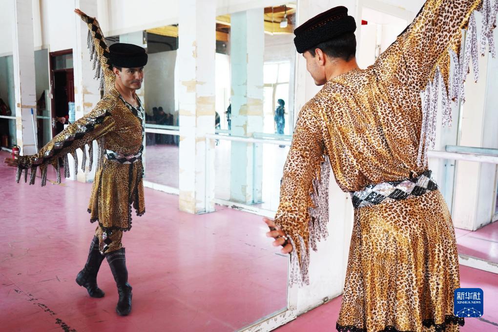 在新疆塔什庫爾干塔吉克自治縣帕米爾旅游區游客服務(wù)中心,縣文工團演員在演出前做準備(9月4日攝)。