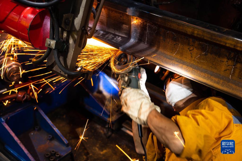 9月6日凌晨,在京廣高鐵株洲西至衡山西區間,鐵路工人在打磨軌道。