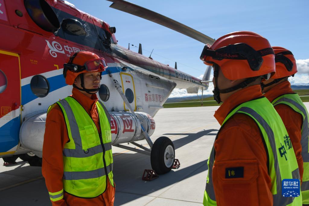 新疆伊犁哈薩克自治州森林消防支隊指戰員在昭蘇天馬機場(chǎng)進(jìn)行訓練(9月5日)。