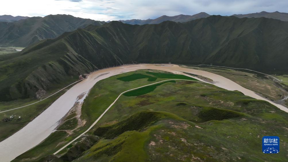這是9月5日在果洛藏族自治州甘德縣崗龍鄉拍攝的一處“草藥間種”的黑土灘治理試驗田(無(wú)人機照片)。