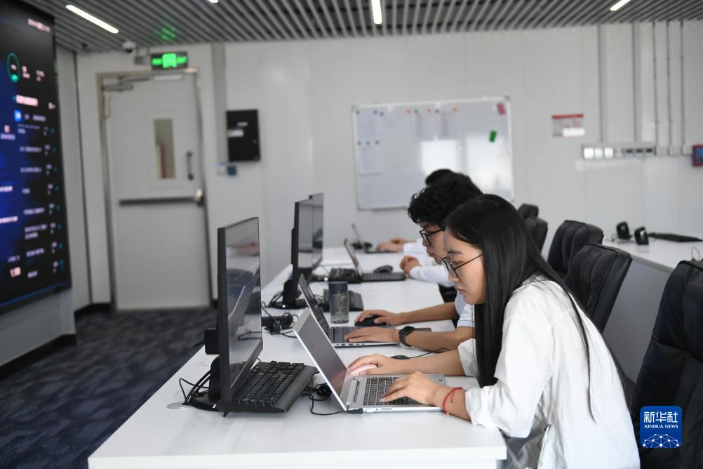 9月6日,在未來(lái)人工智能計算中心監控運維室,工作人員通過(guò)智慧大屏監測平臺運行情況。