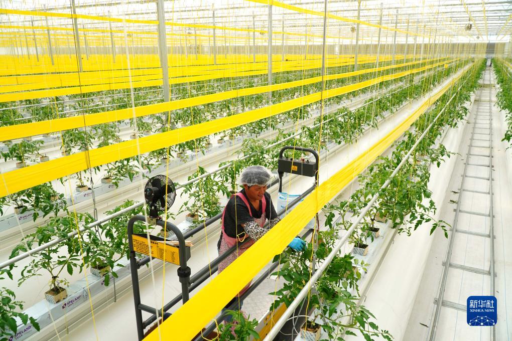 9月6日,在山東省昌邑市飲馬鎮,蔬菜種植戶(hù)在高標準種植大棚里培育西紅柿秧苗。