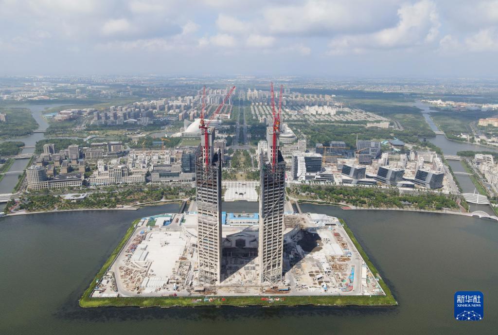 9月6日拍攝的臨港西島中銀金融中心項目建設工地(無(wú)人機照片)。