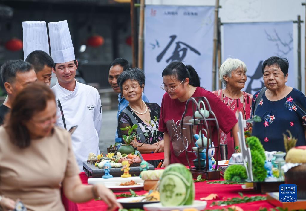9月6日,在浙江省建德市壽昌古鎮開(kāi)幕的古鎮好吃節上,由建德市餐飲協(xié)會(huì )制作的“魚(yú)躍亞運”“騰龍飛天”“亞運定勝”“金牌滿(mǎn)堂”等多道亞運主題菜品在現場(chǎng)展示,吸引了眾多市民的眼球。