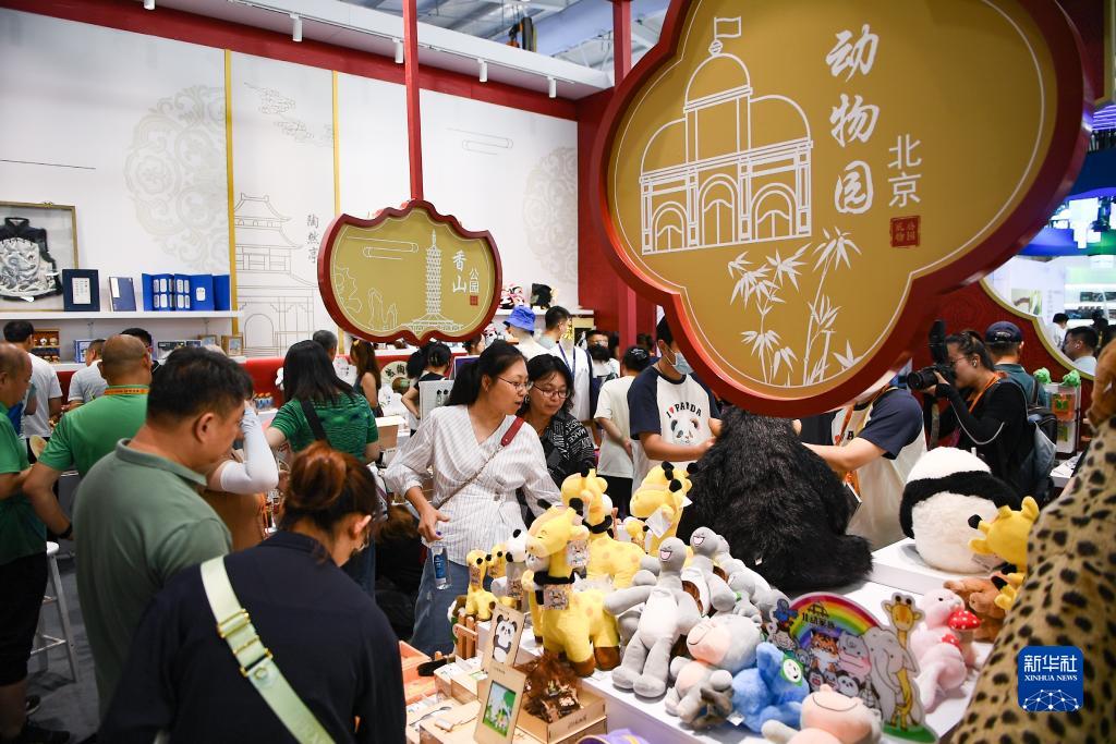 9月6日,觀(guān)眾在服貿會(huì )文旅服務(wù)專(zhuān)題展區“公園禮物”展位選購北京市各公園的文創(chuàng )產(chǎn)品。